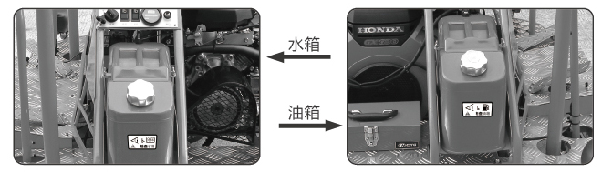 ①開(kāi)始使用前請(qǐng)仔細(xì)閱讀機(jī)器說(shuō)明書(shū),將燃料和水加滿(mǎn)。注意:水箱和油箱做好區(qū)分,水箱上有(檢查水箱)字,油箱上有(檢查油箱)字。如果加錯(cuò)了,會(huì)給引擎帶來(lái)致命的損壞。