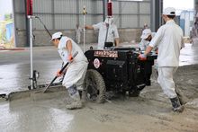 4、激光整平機(jī)整平:在專業(yè)技術(shù)人員的標(biāo)高設(shè)定準(zhǔn)確的情況下,有機(jī)械操作人員對通過激光掃平儀控制下的砼表面進(jìn)行精準(zhǔn)整平,整平機(jī)會自動以10次/秒的頻率對整平機(jī)進(jìn)行校準(zhǔn)控制,以保證整平面的精準(zhǔn)度。